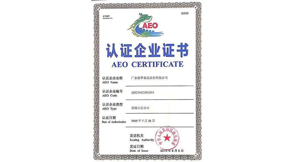 海關(guān)認(rèn)證企業(yè)證書(shū)